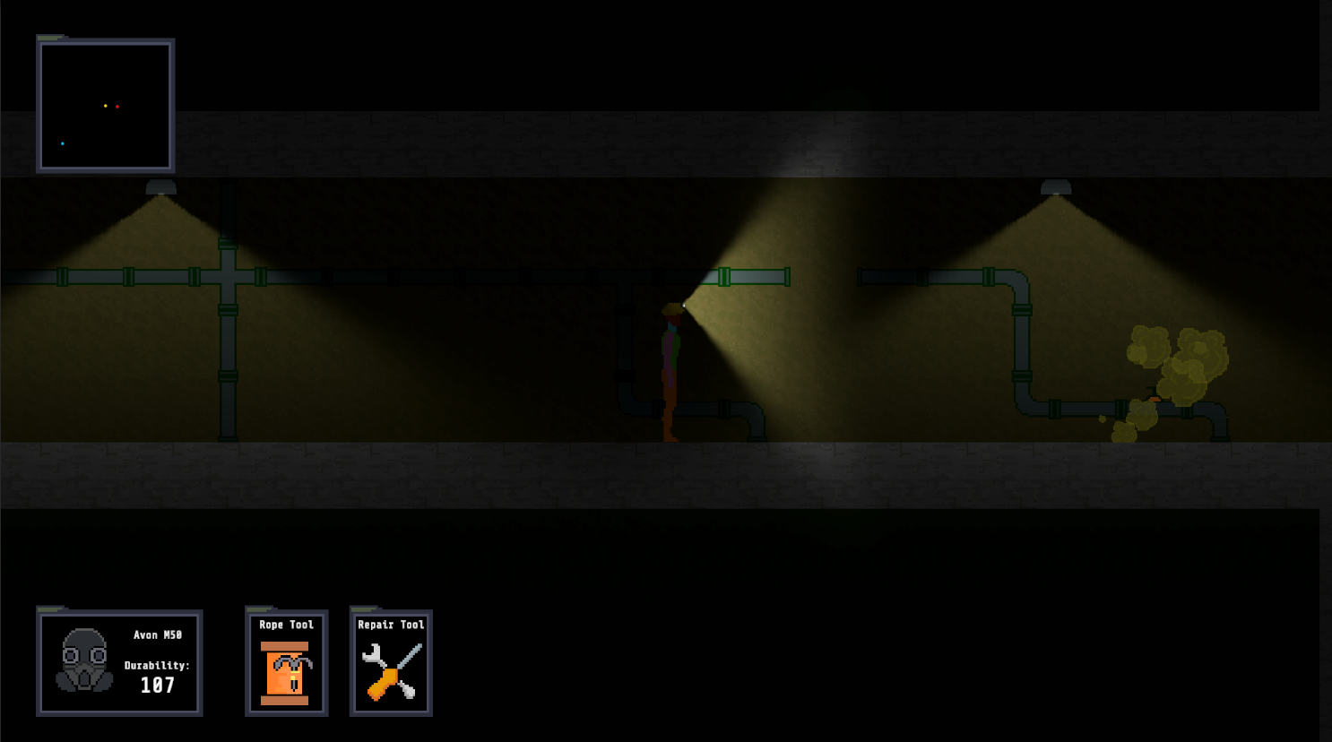 The power plant has malfunctioned, it has released tons of toxic gas. You are a "Breather", a disposable technician sent into the dark tunnels to seal the leaks. But in these depths, it isn't just the dark you have to worry about. The air itself is your greatest enemy. In Dead Air, you must navigate a underground maze where every second counts.